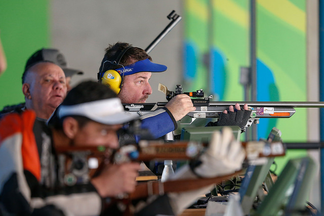 Competidores de Tiro Esportivo Paralímpico vã...